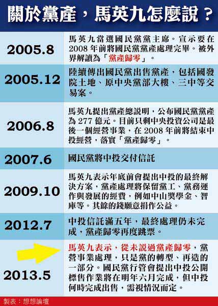 國民黨是全世界最有錢的政黨,到處都有國民黨的投資事業,但是國民黨產怎麼來的?馬英九不是承諾要將國民黨黨歸零嗎?結果他現在否認講過黨產歸零這些話。此外,與國民黨關係密切的中華民國婦女聯合會(婦聯會)主要財產來自於「勞軍捐」,當時收入約有1000億元,換算成現在的幣值約有4000億元,但這些錢到哪裡去了,不需要還給人民嗎?