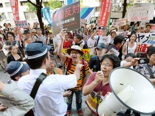 日本民眾上街抗議內閣通過解禁集體自衛權。(圖片來源:共同社,轉引自中央社)