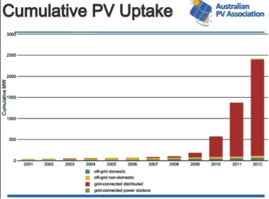 我們再看這張來自於澳洲太陽能電池協會的圖表,可以看出,澳洲的太陽能電池發電容量,絕大多數都是分散式能源,大型集中式太陽能發電場的比例少到可略,所以真的別再說「因為澳洲沙漠多」這種笑話了。