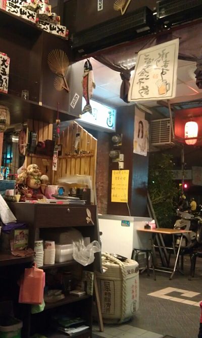 食物更不用說,台灣到處充滿具有台灣特色的日本料理。他們不僅供應日本菜,也經常供應大火現炒的青菜、海瓜子、炸花枝之類日本人不會這樣吃的台菜。這些店的牆面貼著幾張麒麟啤酒廣告,讓店裡往往也有點日本味,但和條通那種日本一級戰區相較,又絕對是屬於本土男兒的氣氛。甚且,下町的小料理店絕少日本人光顧,來往都是各階級的台灣人,也因此有著跟日本截然不同的飲食習慣。除了菜一定比較大盤外,也可從店鋪供應的清酒看出,條通的清酒、燒酒種類繁多,令人眼花撩亂。但下町的清酒僅有溫酒與冷酒兩種,品牌不明,而且大多數的客人都喝啤酒。