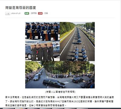 兩起空難發生之後,「台荷」的比較就開始在網路流傳。首先,欠缺專業的嗜血台媒的吐血式報導再度出現,家屬悲慟的畫面、媒體突襲副機長家採訪…等等,對比荷蘭媒體的自律與冷靜專業報導。於是,網路上開始流傳荷蘭媒體的報導準則,包括不能報導家屬悲傷,保護隱私與悲傷的權利、不得流傳亡者肖像…等等。之後,隨著空難亡者遺體的運送回荷蘭,荷蘭的高規格與肅穆尊嚴的處理方式,對照台灣善後的處理亂象,殯葬業者搶生意刁難家屬、認領遺體出槌…等,又開始讓人一陣熱議,台荷兩地亡者尊嚴的高低差。