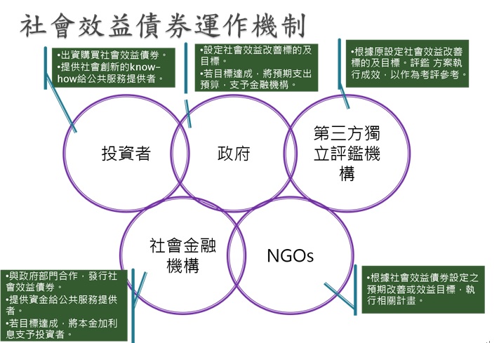 而要激發社會創新能量,重要的關鍵是要盈利部門所重視的投資效益與非營利部門重視的社會效益進行融合,以形成社會投資市場。而社會效益債券(social impact bond, SIB)正是此一重視社會創新之新治理模式下的產物。