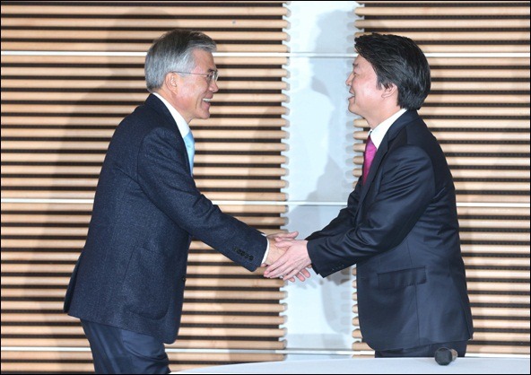 在面對民主統合黨候選人文在寅多次的「單一化」號召之下,離大選僅剩四十三天的時候(11月6日),安哲秀終於選擇與文在寅單獨會面,並在會後共同發表聲明,包括:「政治革新的第一步是政治圈要先放下既得權益」、「在推動單一化的時候,不計算有利或不利之處,只看著渴望著新政治與政權交替的國民的心意來向前進,而國民的共感與同意是必要」、在候選人登記日之前決定單一候選人、需要建立「國民連帶」並制定「新政治共同宣言」……等包含七項決議的所謂「單一化共同合議文」。