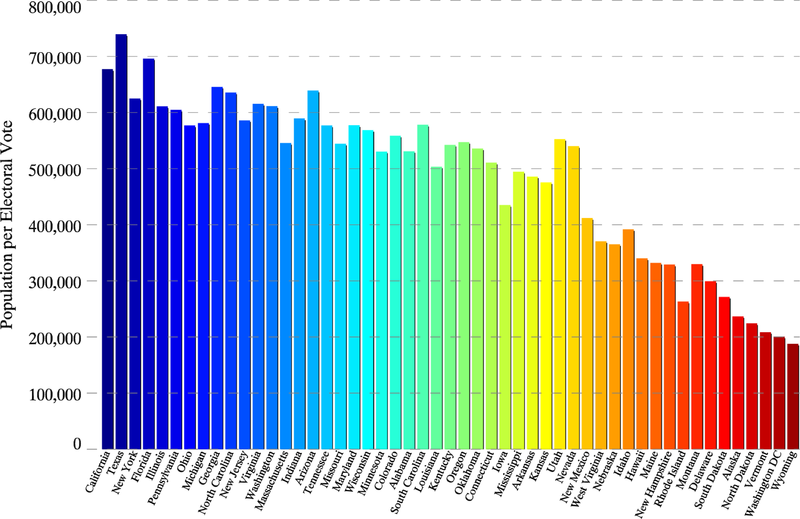 如果採用直選的話,在大州贏個一兩成,比幾個小州全部加起來還多,很明顯的政策會嚴重倒向大州,選舉人制度下,小州雖然選舉人票數少,仍是好幾個小州才抵得上一個大州,但是小州的「人均選舉人票」價值較高,也就是說候選人拉攏小州的投資報酬率高,平衡了票數上的落差,這樣的制度維持了各州的平等。