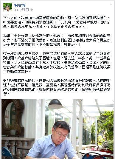 然而這種悲哀的現象並沒有停止。柯文哲先生最近發表了一篇短文,他在其中居然對蔣經國的統治有如下評語:
