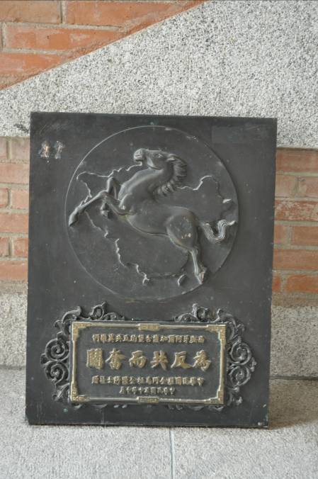 阿卡薩堡(現國立軍事博物館)典藏室典藏當年台灣贈與的石碑。