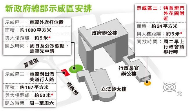 新政府總部示威區安排,東翼外旗杆位置即公民廣場。