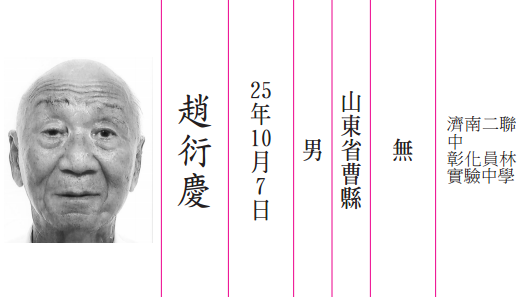 我在網路上隨意瀏覽台北市長的選舉公報,發現了這個名字以及經歷:趙衍慶,學歷「山東聯中」、「員林實中」。後面一行「流亡學生」,簡單幾個關鍵字,好像接起串聯電源一樣,白色恐怖氤氳舞台突然打亮燈光。
