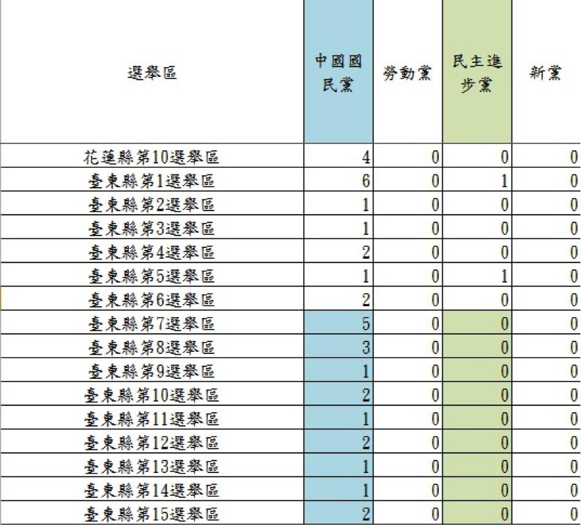 又以台東縣原住民議員的選情為例,合併平地原住民及山地原住民共九個選區25個參選人中,民進黨同樣沒有提名任何候選人。多數的原住民選區中,參選人清一色是國民黨身份,甚至在平地原住民縣議員第九選區、山地原住民縣議員第十三選區,兩地是由國民黨議員「同額參選」,一個蘿蔔一個坑,塞得剛剛好又舒服。