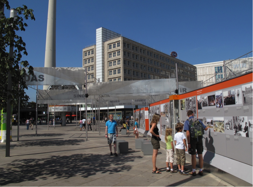我的思緒,此刻回到五年前的柏林。彼時的亞歷山大廣場,被展覽看版佔去大半的空間,20年前同一地點發生的革命,是全城最熱門的話題。不論晴雨或下雪,每次去都可以看到提著購物袋、遛著狗、或推嬰兒車的民眾,他們或駐足,或主動圍成小圈圈討論,神情十分專注。