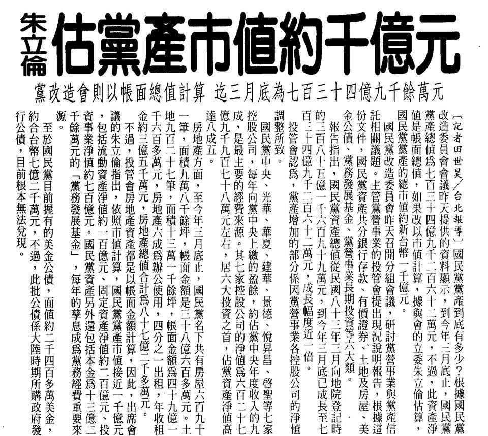 國民黨事業投資金額 |