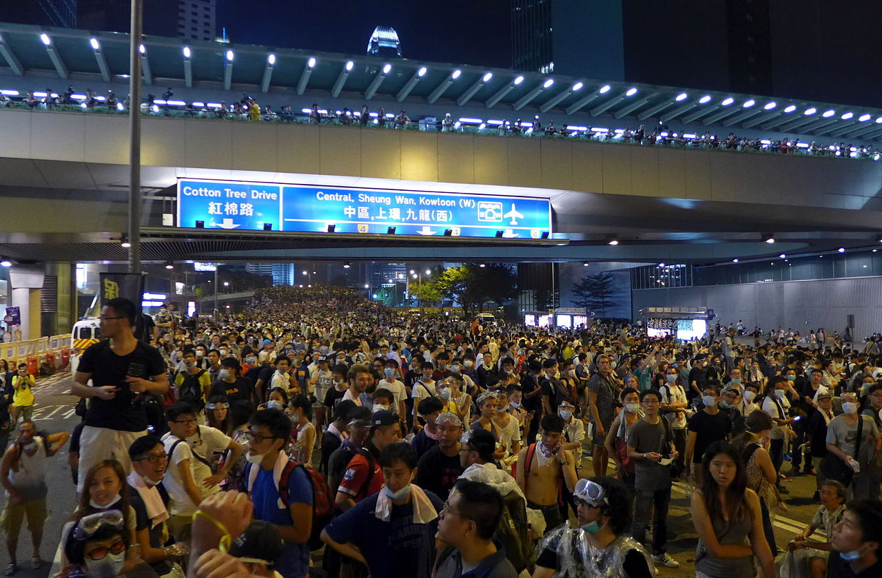 那可能是一場革命初始的樣貌。警方封鎖了金鐘地鐵站,憤怒的群眾從灣仔及中環兩方向湧入,人群從人行道滿溢到車輛疾駛的夏慤道上,佔領逐漸形成。數萬人站在香港的政治中心,港島最重要的主幹道上,共同感受過去香港人內心某種堅不可摧的信仰──法治與秩序被解構的震撼。