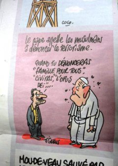 天主教傳出兒童遭性侵害醜聞,成了《查理週報》調侃的切入點。此外,有幅漫畫呈現教宗與一位穆斯林的對話,前者勸穆斯林們應出面指責恐怖主義,後者則請教宗先公開指責反同志婚姻運動與一些天主教激進團體再說。夏布也曾以某猶太激進團體為題,畫中角色表示:「總不能讓極右派民族陣線黨壟斷種族主義這領域吧。」