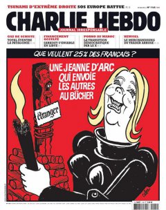 法國極右派是《查理》勢不兩立的死對頭,最常把《查理》告上法院。雜誌認為極右派反猶太人也反阿拉伯人,總是毫不留情地口誅筆伐。翻開去年刊物,頭版常可見到極右派要角勒班父女(Le Pen)身影。勒班之女被漫畫家扮裝成聖女貞德(法國極右派視貞德為重要象徵),不過這位「勒班-貞德」不再是為國捐軀的烈士,反而將移民處以火刑。