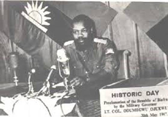 奈及利亞版二二八震驚了東南方的伊博族人。中校Odumegwu Ojukwu,以種族清洗,選舉舞弊和貪汙腐敗為理由,在1967年5月30日宣布伊博族支配區域獨立,建立比亞法拉共和國(Republic of Biafra)。 比亞法拉在伊博語裡是「上升的朝陽」。