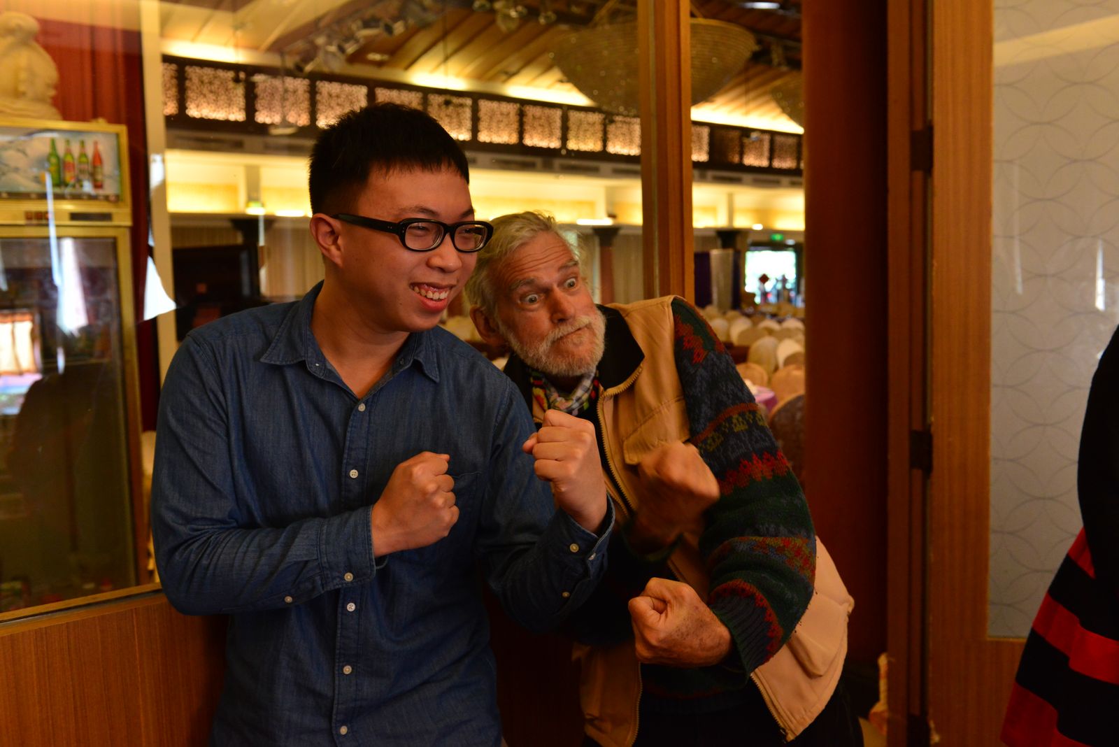 梅心怡今年身體、心情都欠佳。先是因罹癌,不得不向任教的輔大請假,住院療養;養病期間,又因太陽花學運的323占行政院案被起訴。今天看到他來,大家都很驚喜。他穿著比往年正式,看起來虛弱、蒼白。他入席坐定,正好坐在魏揚對面,先是怔了一下,接著手指著魏揚說「起訴囉」。沒錯,兩人同案,同遭追殺。