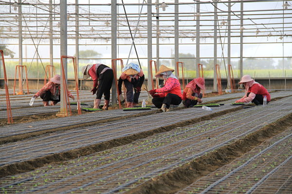 好不容易找到了,來的卻是一批六十歲以上的阿姨。需要辨色、整枝等的細活容易出錯,搬運、拖拉等粗活又難以勝任。況且工資不斐,一天工作八小時,雲嘉平原地區除了日薪一千一百元(某些地區已經漲到一千二百元),業主還要自掏腰包負責早餐和下午的點心。在農業生產成本中,工資的支出佔有相當的比例,而這高昂的支出,其生產效率又不及其他產業。