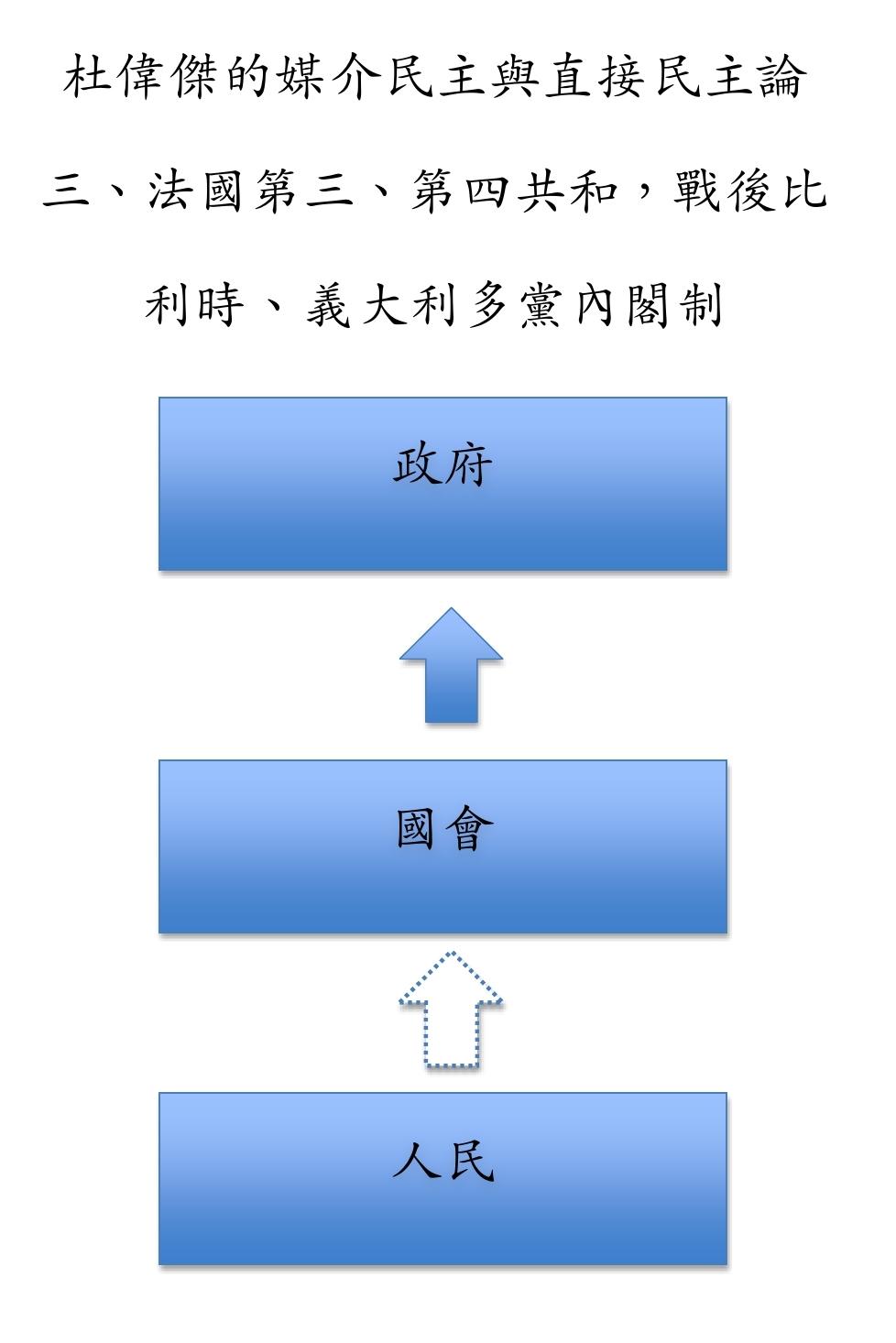 杜偉傑認為法國第三、第四共和的問題,在於憲政體制與政黨生態共同產生的「主權在民無法確切落實」。主權在民我們習慣稱呼為「國民主權」、「人民主權」。什麼叫國民主權?人民主權?這些名詞在法國憲法學上有其特殊意義與分野。在法國,人民選出國會議員,希望讓國會議員組成國會去形成政府,制定國家的主要政策方向並且實行,這是「國民主權」(Souveraineté nationale)的一種展現。而人民主權則在國民主權的基礎上,添加人民可以透過直選總統形成行政權等機制,或者用公民投票對人民選出來的公職人員做某種程度的監督與制衡,為國家的重要決策講最後一句話做最後決定,這樣的機制在法國稱之為「人民主權」(Souveraineté populaire)。法國當時的問題是以為投票選國會議員組成國會,國會議員再選出內閣,人民的意志與選擇可以滲透到最高層,做最後的決定。但是第三共和的多黨不穩定體制,加上內閣制,由議會選舉產生閣揆,使得人民本來應該可以透過選票直接影響政策國家方向的直接民主,變成一種透過國會議員協商甚至暗室交易的媒介民主。不要說達不到人民主權的標準,連國民主權是否能夠落實都有疑問。