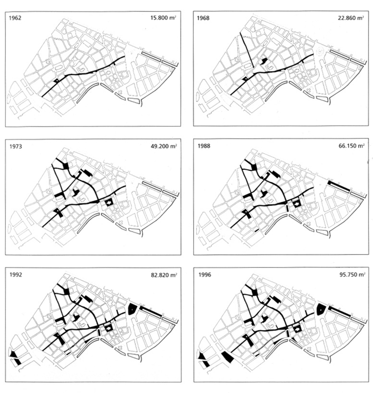 從1962年斯托勒的15,800平方公尺開始,市中心越來越多的地方變成了行人專用或行人優先的地帶,到該世紀末,其總面積已在30多年間擴大為原本的6倍多,達約10萬平方公尺。