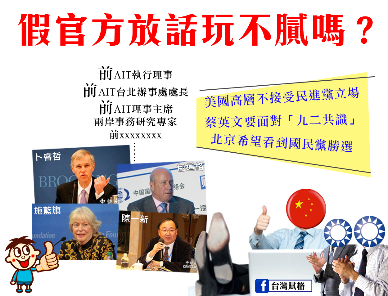 狼又來了!離2016年總統大選還有好長的一段時間,但是上次與國民黨聯手恐嚇台灣人的美國人包道格又在講「九二共識」了。這一個多禮拜來,美國人施藍旗、包道格陸續逼民進黨接受「九二共識」,馬英九更聲稱「九二共識」是台灣經濟向前行的基礎。