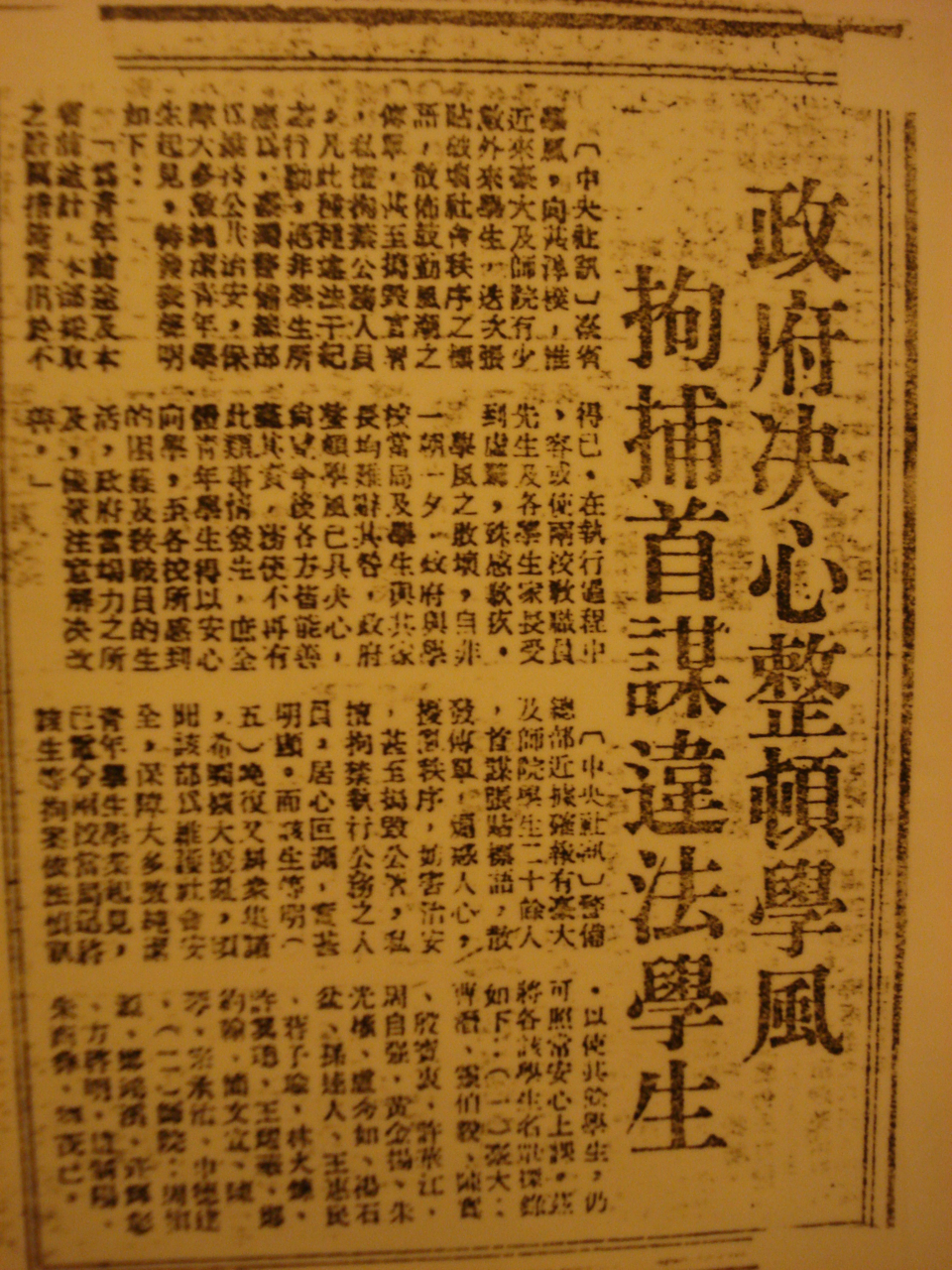國民黨政府最大的錯誤,一方面,是把學生當作學生;也就是說,他們認為學生的本份就是讀書,如此而已,不應該理會其他事務,更不應該反對政府。另一方面,卻也是沒有把學生當作學生;也就是說,他們認為學生一切的思想行動都是受到他人煽動,認為學生沒有獨立思考的能力