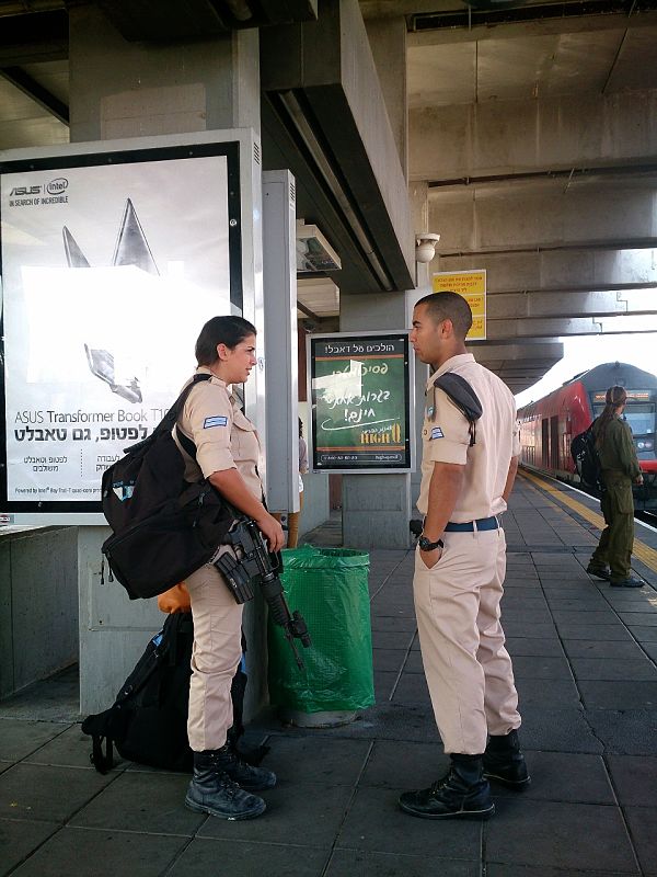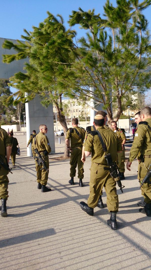 進入軍營的當天,車子開到了以色列軍隊中部最大的營區茲瑞芬營區。四月天的以色列,陽光火烈,連守衛都顯得懶洋洋的。在以色列,戍守大門的衛兵,沒有台灣人印象中守衛必須像木頭人一樣站好的模樣。