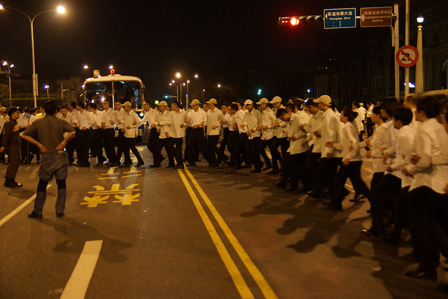 4/1凌晨02:00,當我建議把民眾帶上草皮後,在草皮上的賴品妤和現場群眾共同決策:重回重慶南路上癱瘓交通,然後需要更多的靜坐群眾癱瘓交通,這起先讓我十分猶豫,但說服我的理由確實是亞投行作為矮化主權、民主侵害、被迫加入強國資本主義競賽,是全國民眾都有所關聯的,我如果再繼續侷限下去表示發起團體的決策已經和現場人民所需斷層;然而我僅確認了組織內成員可以背負刑責的心裡準備,和告知民眾前方憲兵已舉起步槍,並且要求跨組織協助避免民眾往前衝進憲兵開槍範圍,可是後勤還是不清楚,律師團也有焦慮:公民們對有律師的幫忙是否會太過於輕估參與行動所要付出的代價?目前華光社區反迫遷的五名聲援者被判妨害公務罪,判決拘役五十天,歷經兩年的訴訟,這些司法的漫長代價,都需要我們發起團體直接主動告知前來受到動員群眾,還有日後的陪伴。