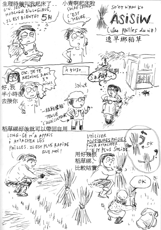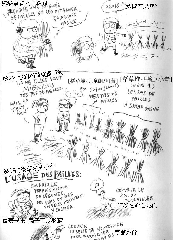 一位長輩答應把自家稻田的稻草給小青使用,我們約好隔天透早去把長輩田裡稻草綁好,好帶回小青的田裡使用。