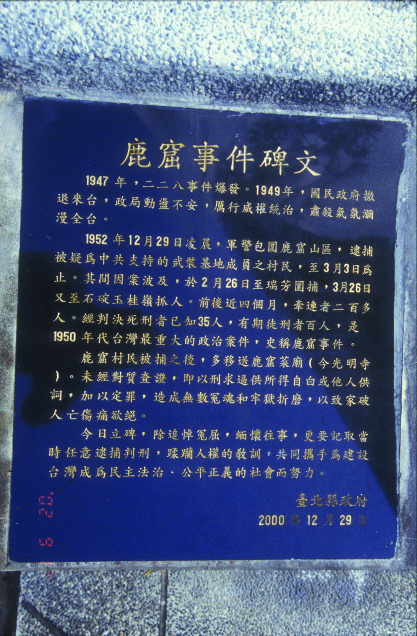 1952年12月28日晚上,省議員投票日因為一名便衣警察失蹤,引發警備總部出手,在29日凌晨發動保密局軍警近萬人包圍南港、汐止、石碇山區展開全村大逮捕,當場打死一名指導員劉學坤,村民被抓到鹿窟禪寺認罪或刑求偵訊。後來,包括石碇鄉、瑞芳鎮、汐止市等地,四百餘個根本不識字,遑論什麼是馬列主義的農民與礦工被捕,並被判以不等的刑期。