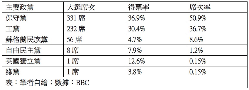 英國為傳統的民主國家,希望透過英國大選得觀察面向的不同,是否能有一些啟示,雖然在選前總是充斥著沒有政黨能夠過半的聲勢,小黨會對兩大黨有著影響力,但選後保守黨還是單獨過半,不必再受小黨牽制,上屆的僵持政府沒有出現,台灣面臨修憲的議題,總是想要修改成內閣制,看著傳統內閣制的國家是否能帶給台灣一些啟示呢?