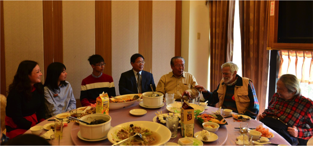Lynn生活簡樸,有很長一陣子住在龍潭,在八張犁的美國學校教書。常見他騎著破舊車在龍潭街道穿梭,沒事就到家裡找家父聊天。他話不多,看看老人家,喝杯茶,坐不多時便走人。近年他得到輔大教職,較少在龍潭出現,但每年例會一定參加。 今天他到場後,父親特地要Lynn的老戰友、盧孝治兄介紹梅為台灣所做的事蹟,父親還把在餐廳外玩手機的孫子隆一、孫女荷衣叫進來, 「來上一堂民主課吧!」