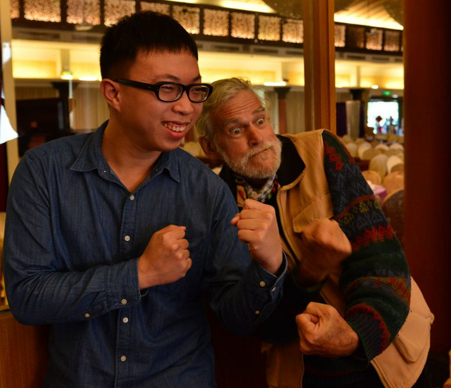 Lynn今年身體、心情都欠佳。先是因罹癌,不得不向任教的輔大請假,住院療養;養病期間,又因太陽花學運的323占領行政院案被起訴。今天看到他來,大家都很驚喜。他穿著比往年正式,但看起來虛弱、蒼白。他入席在父親身旁坐定,正好坐在魏揚對面,先是怔了一下,接著手指著魏揚說「起訴囉...」。沒錯,兩人同案,同遭追殺。
