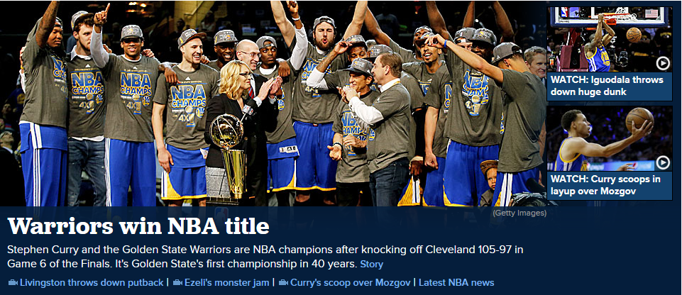 我並不打算把勇士隊奪冠的原因過度簡化,除了柯瑞(Steph Curry)和湯普森(Klay Thompson)外線的得分能力,團隊精神、球員適得其所、攻守並重,以及菜鳥教練柯爾(Steve Kerr)出奇成熟的教練哲學,和多數冠軍隊伍一樣,都是他們能夠在最後拿下金盃的原因。但不能否認的是,以正統籃球觀念來分析,像勇士這種被歸類為跑轟(run and gun)風格的球隊,奪冠機率恐怕不高。