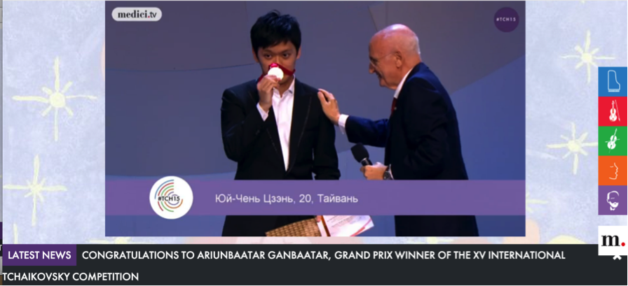 台灣時間2015年7月2號凌晨,台灣新秀小提琴家曾宇謙在四年一度的柴可夫斯基音樂大賽獲得了銀牌殊榮。由於金牌從缺,曾宇謙可算是得到此次競賽的最高獎項,這也是他繼今年一月新加坡國際小提琴大賽首獎入袋後,另一個國際大獎。頃刻間網路被祝賀文洗版,台灣音樂界對此無不振奮鼓舞。