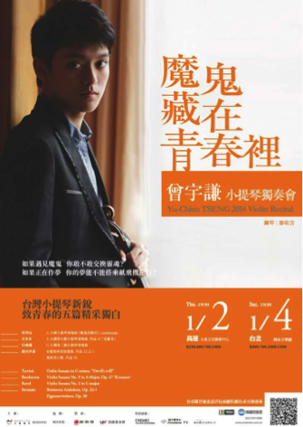 第一次聽曾宇謙的現場演奏是在2014年初,那場音樂會曲目涵蓋了音樂史各個時期。當時便對這位年方十九的小提琴家留下深刻的印象:除了對各個時期作曲家的音樂詮釋表現恰如其分,肢體動作與運弓也不見年輕音樂家常有的誇張表現,反而是沈穩內斂地處理每一段音樂;他從小征戰國際大小比賽,其技巧自然不在話下,當日在炫技的「魔鬼的顫音」與「流浪者之歌」中,精準而不狂放的琴音更是令人讚嘆。
