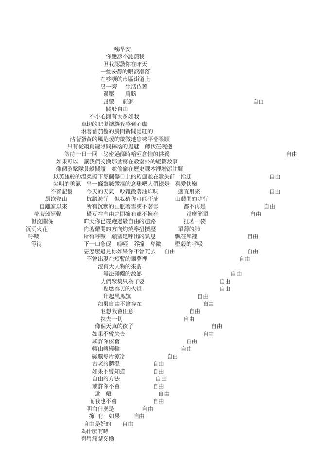 謹將此詩,獻給所有為自由獻身的無名者們。