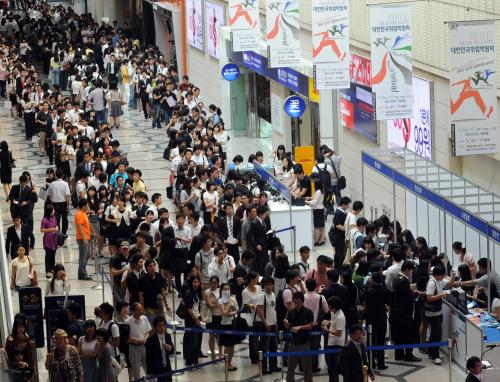 「今年電視台節目製作只開了8個缺,來了1000多人應徵。想說以前曾在那實習,應該有機會。結果好不容易過了第二、第三關,沒想到在最終面試前被刷下來,另外又投了四、五家公司也沒著落。」畢業於名門大學影音設計學系的周永日喪氣地收拾電腦離開。