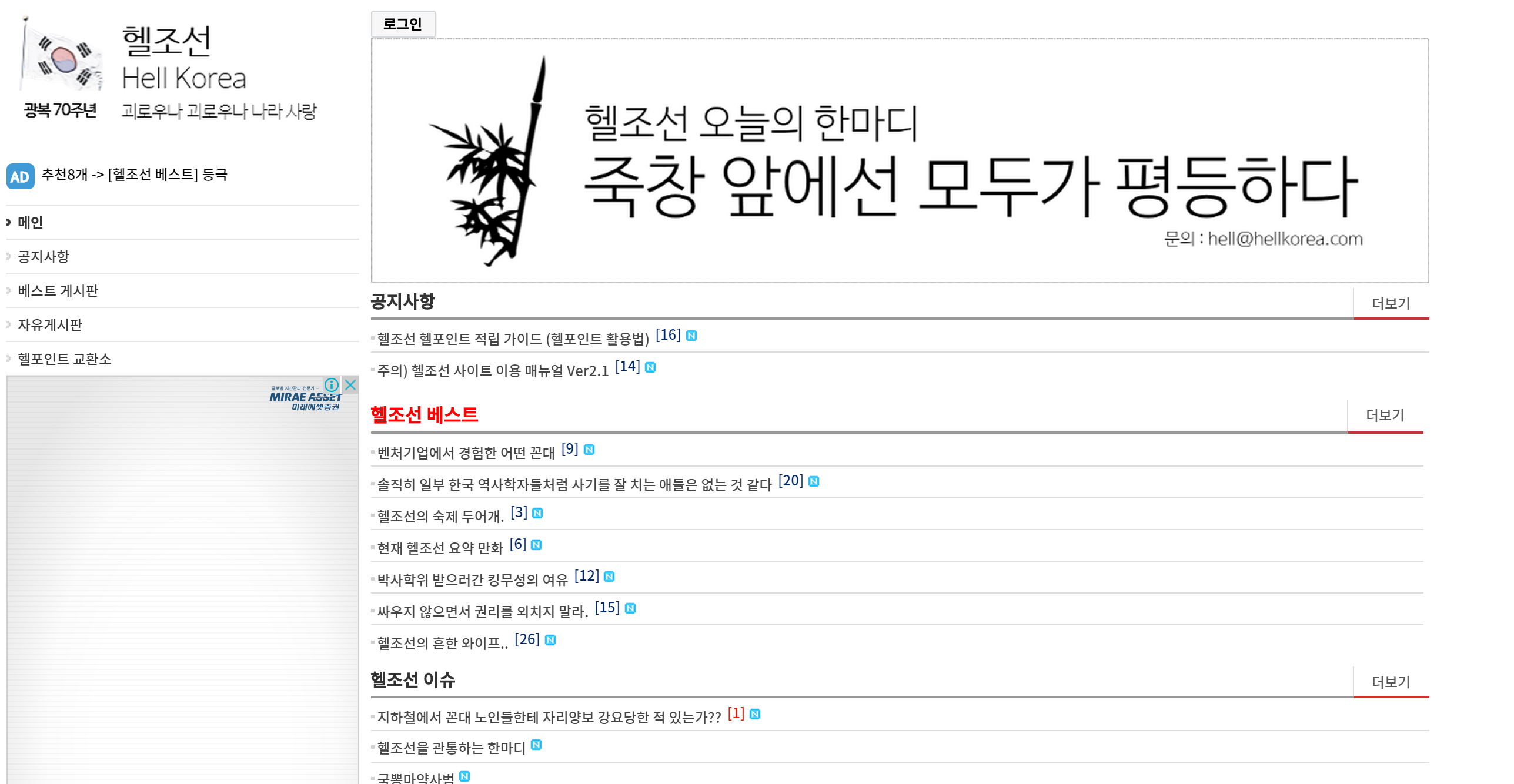 「性別不平等、校園虐待、軍隊虐待、職場排擠與霸凌充斥;有錢人無罪,沒錢人有罪,這些都是地獄朝鮮的自然現象。」類似這樣的言論,不斷出現。值得注意的是,留言的人不再抱怨,而是反常地以對「地獄」的嘲諷來合理化一切。