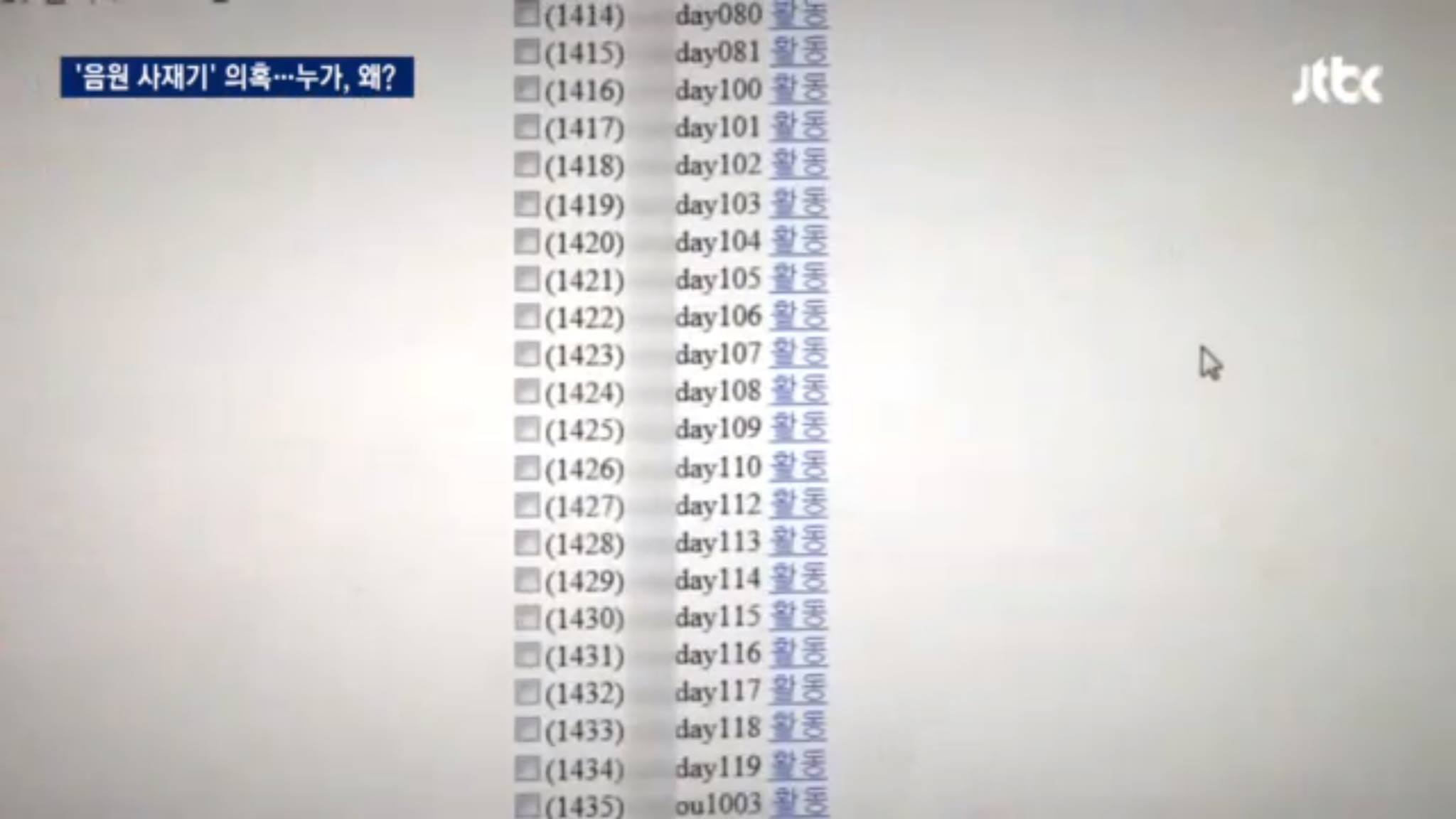 JTBC電視台本週針對「音源炒作」問題,進行大幅調查報導。他們追蹤一位在9月中旬發行單曲,在數小時內登上最大音源網站Melon現時排行榜首的某大型公司偶像團體的音源粉絲專頁。
