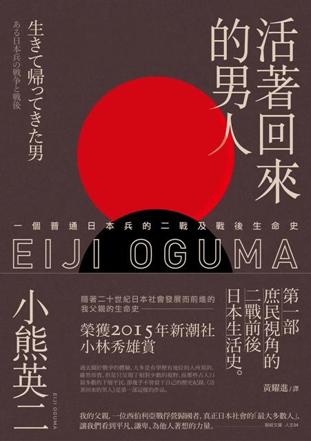 適值台灣「光復」七十年。七十年來,隨著國境線的增生與改劃,經歷同一場戰爭的各地民眾,經歷了不同而彼此陌生的戰後。隨著冷戰結束與民主化,在國族敘事下被壓抑數十年的那場戰爭,又以多元的面貌在歸返於我們眼前。七十年間,「戰爭」與「戰後」如何互相型塑,而我們今天又當如何面對這七十年的臺灣、東亞與世界呢?恰在九月,秋颱杜鵑來襲之前,日本歷史社會學者小熊英二為聯經出版新書《活著回來的男人》(生きて帰ってきた男 ある日本兵の戦争と戦後,2015)宣傳活動抵臺,為我們帶來了一份他山之石。