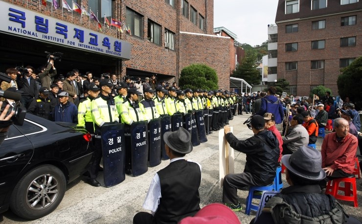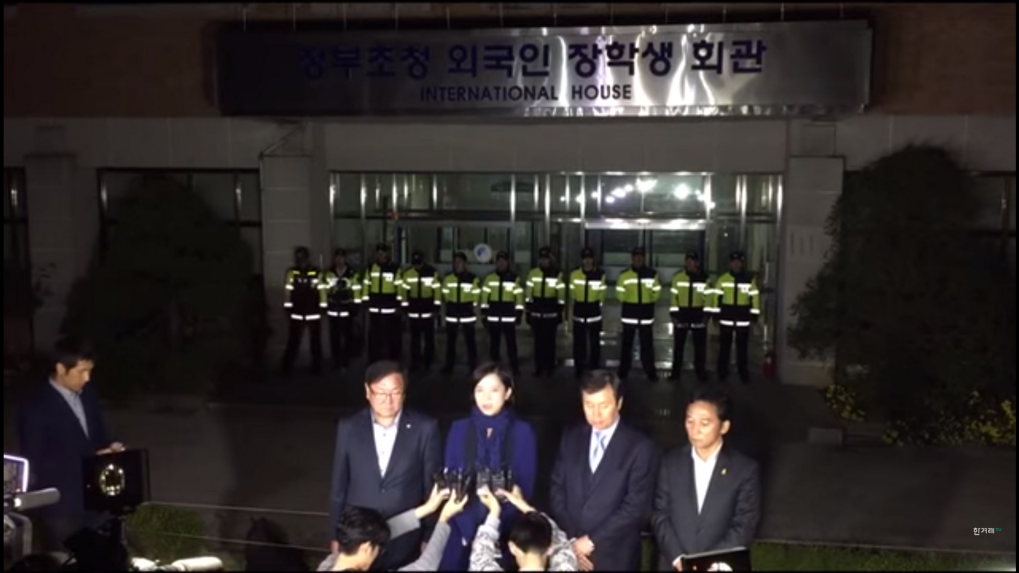 接到這份文件後,數名在野黨國會議員,立刻前往這個小組所在的東崇洞的國立國際教育院園區,發現辦公室連週末夜都燈火通明。但發現議員前來「踢館」,職員立刻反鎖出入大門,並通報警察前來攔阻外人進入,雙方陷入長達18小時的對峙。