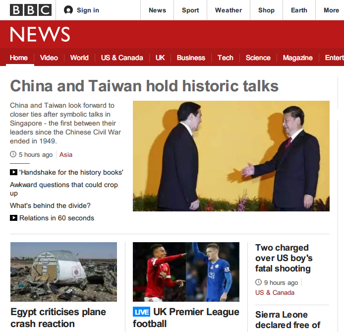 《紐約時報》在馬習會當天寫著:「這個自治而民主的島嶼上的選民,已對中國愈來愈憂慮」「去年由學生發動的占領立法院運動持續近一個月,以阻擋與中國的貿易協定,即為現今所知的太陽花運動。」