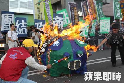 各家主流媒體著墨最多的也只是最後在蔡英文競選總部前燒藍綠小豬的行動上,大概是因為具有戲劇效果,又是遊行的最終點、群眾集結的場域,因此早在遊行隊伍抵達之前就先於板車舞臺前就定位,而在藍綠豬挪動位置時也大批的隨之移動,大概就是在搶拍出刊的共同語言「起火的小豬」吧。也許因為如此的呈現方式,會讓未能到場、僅能就媒體管道得知訊息的社會大眾以為今年的秋鬥是明著跟民進黨(在野黨)對著幹、如同主持人在遊行最末,也就是在蔡英文總部前面所聲稱「我們不是國民黨的激進側翼」所擔心的事情一樣,有些評論真的有「非綠即藍」的思維,常見的論點就是「只鬥民進黨無異國民黨同路人」。