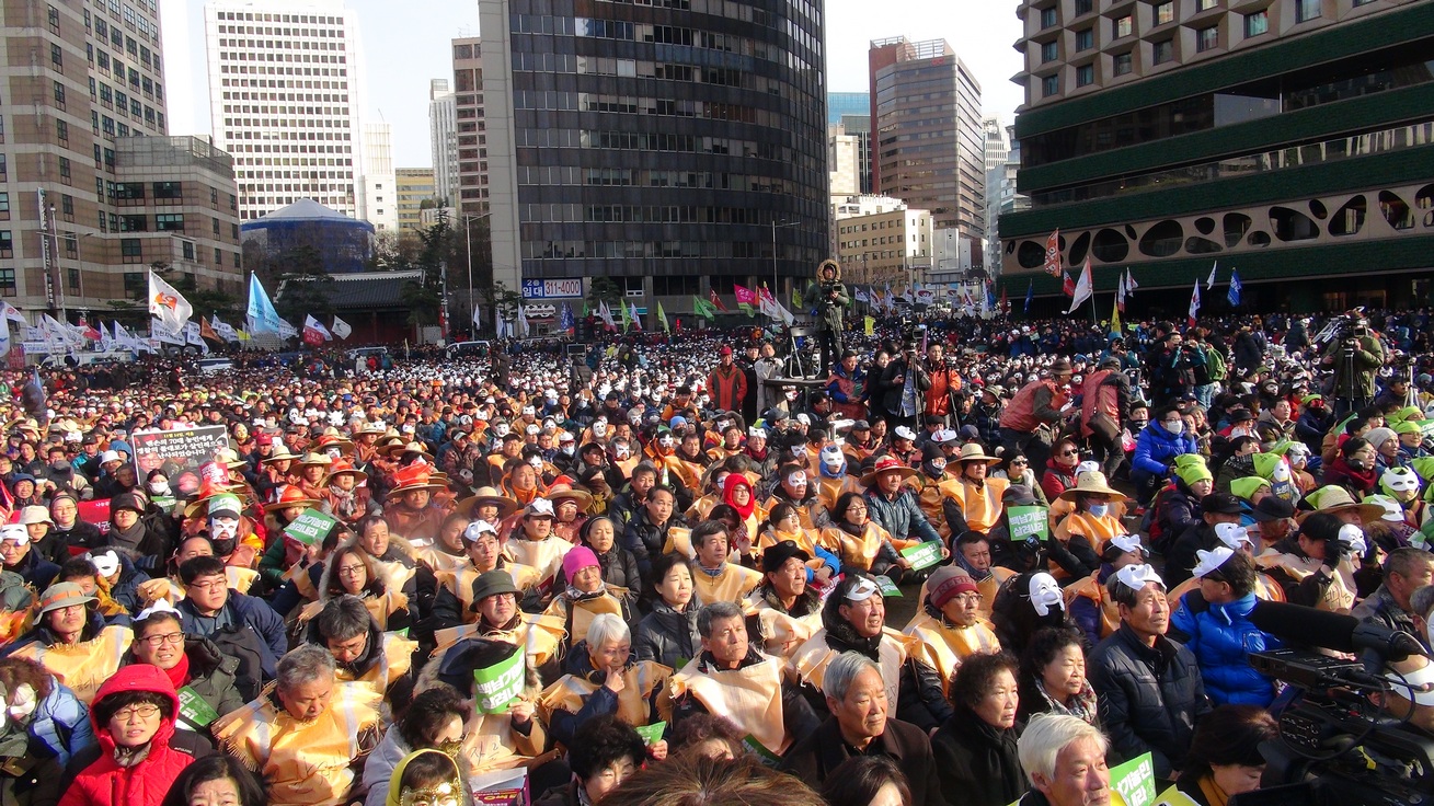 在都心集結後,示威群眾列隊行進離市廳廣場有3.5公里距離的首爾大學醫院,為在上次集會中,遭水柱擊中而昏迷病危的農民白南基老先生祈福,過程中,警方與示威者間幾乎沒有發生任何衝突。