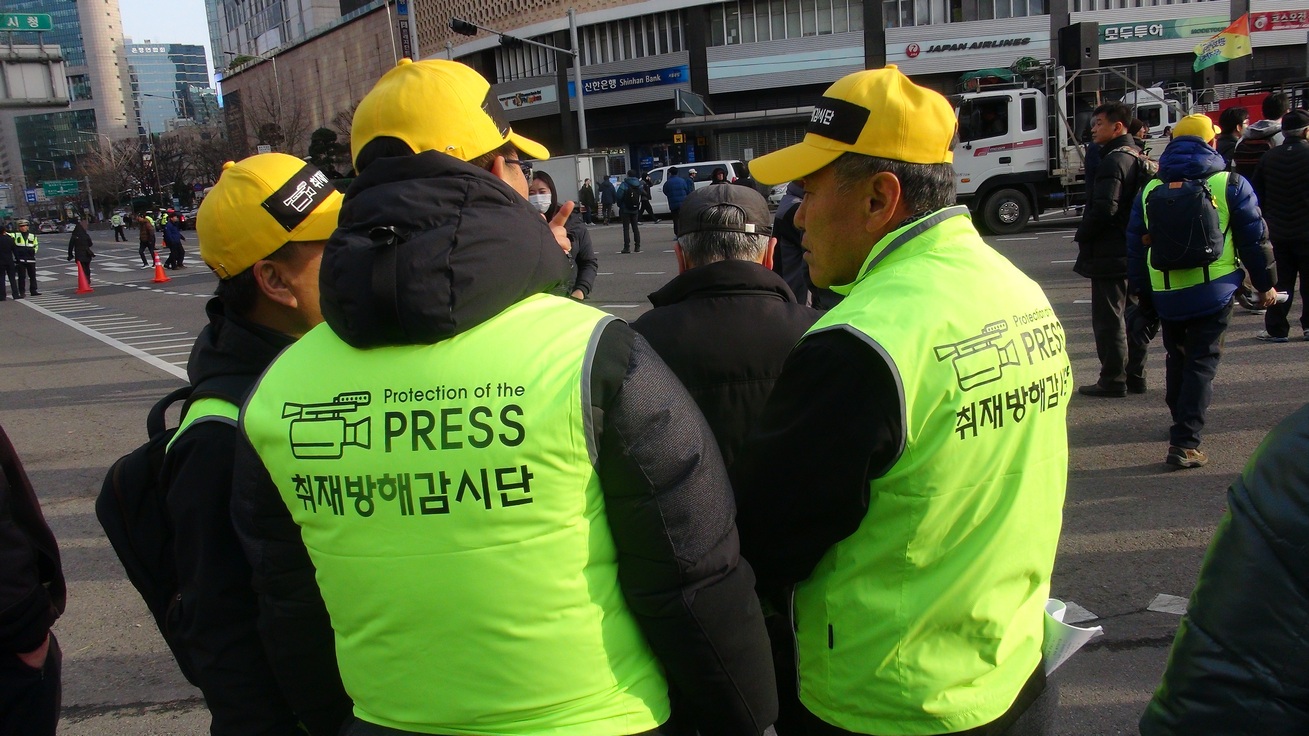 值得注意的是,這次示威出現了「採訪妨礙監視團」。由於上次的示威,包括KBS,還有多家小眾媒體、公民記者和外國特派員,身上掛有「PRESS」的臂帶,卻都遭到無差別的噴射水柱與催淚液,造成有人掛彩,引發新聞工作者的憤怒,全國媒體工會於是和韓國記者協會、電視記者聯合會及多個團體共組工作小組,在示威現場隨時監控。