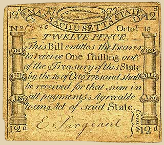 關於財政問題,由於大陸會議並沒有權力徵稅,因此決定開始印行紙幣,以支持戰時財政,除了大陸會議以外,各州也可各自發行貨幣,後來造成嚴重通貨膨脹,給新生的美國帶來不少麻煩,但是卻也是支持美國撐過戰爭不可或缺的財務手段。