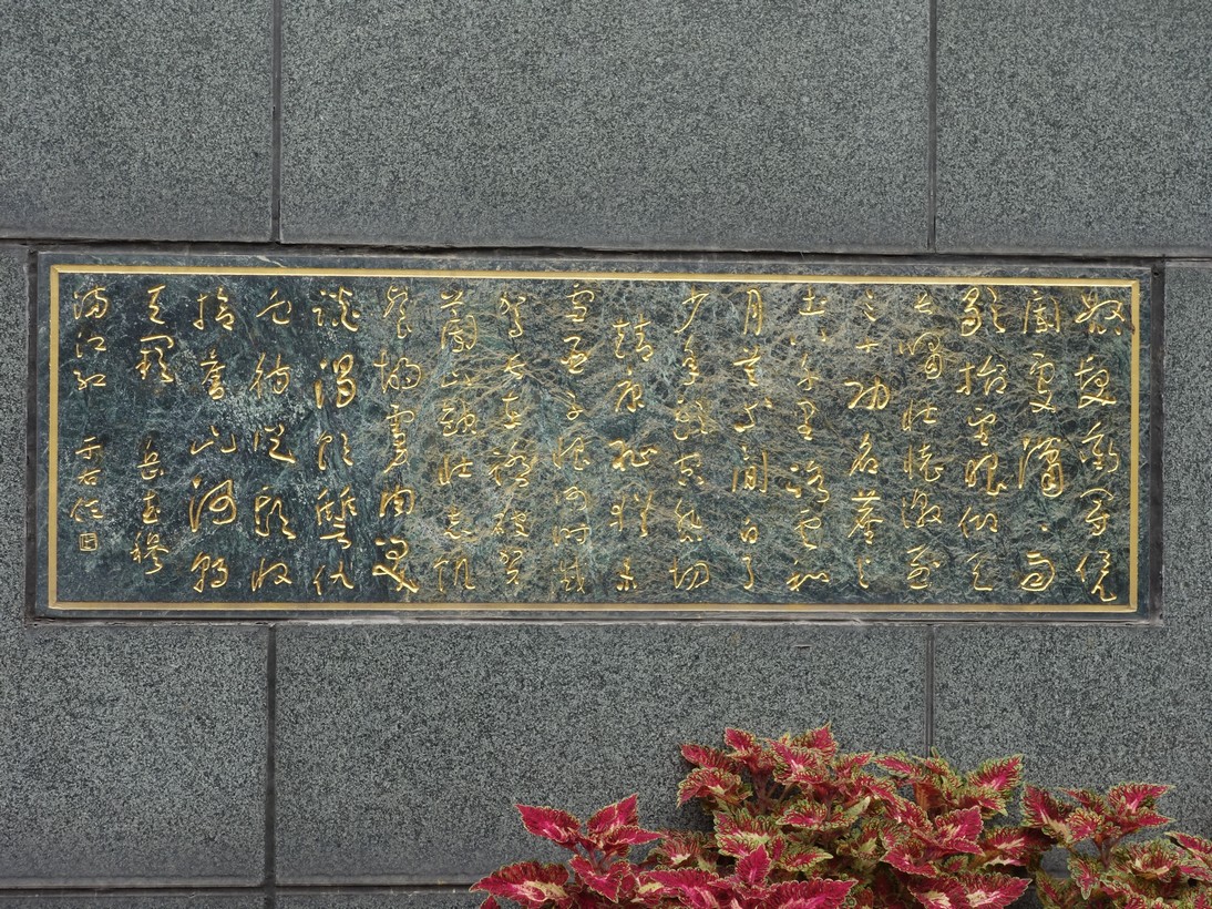 銅像下方,除了「還我河山」外,再下方是于右任先生手書石刻的〈滿江紅〉,飛揚的草書字跡,靈動有力,真是漂亮。而「滿江紅」這首詞,現在,也很少聽人唱了,現代人唱〈後庭花〉。這個年代,我們早已不說「還我河山」了,只剩下14號公園裡的岳武穆王銅像,以一種昂揚戰神的神態,向天揮戟,書空咄咄。