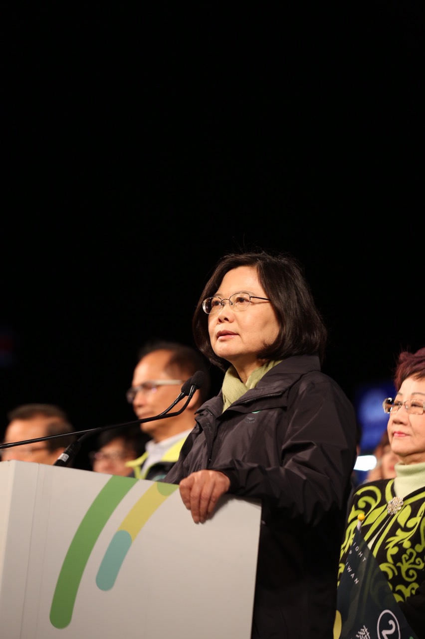 我們一起為台灣完成了一件重要的事,這是我此時此刻,心裡的感覺。我的心情其實很平靜,因為,我知道,未來我的責任將會很重。感謝大家對蔡英文、陳建仁的支持,感謝大家對民主進步黨的支持,我再一次代表民主進步黨,向全體台灣人民,致上我最深的謝意。