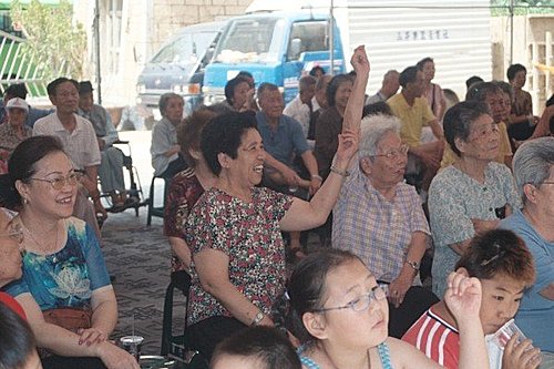 老文家離婆婆家約10公尺,他常和婆婆碰面而且很熟。婆婆很親切,雖年近80,白髮蒼蒼,也是穿著樸素,髮髻整齊,笑口常開的向我和老文說:「好!好!」