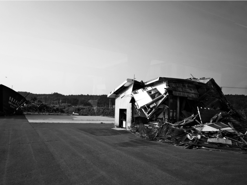 回台不久,新聞刊出⼀位波蘭攝影師Arkadiusz Podniesinski的福島攝影圖輯,他交錯使⽤長短距離凝視不⾃然的災區,搭配好幾組空拍鏡頭⿃瞰福島更添視覺說服⼒。我還記得有⼀句標題很動⼈:「被⼤⾃然接管的福島」。確實,眼⾒那些被地震與海嘯⾃然之⼒擠壓扭曲變形的⼀團事物,⽽後在鋼筋或廢鐵空隙之中雜草叢⽣的求⽣意志。在災難現場,你會格外感受到所有⾔之鑿鑿官⽅修辭的虛妄與現代科技⼈造物的脆弱。